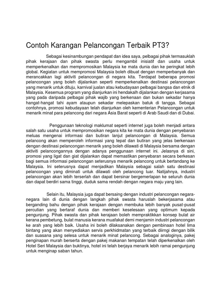 Akan tetapi mungkin ada sebagian dari kalian yang. Pelancongan Faktor Berkembang Sektor pelancongan merupakan salah satu industri perkhidmatan terpenting di negara kita. Contoh Karangan PT3 Kebaikan Sektor Pelancongan Hal-hal yang berkaitan dengan sektor pelancongan kerap menjadi bahan paparan di media massa.