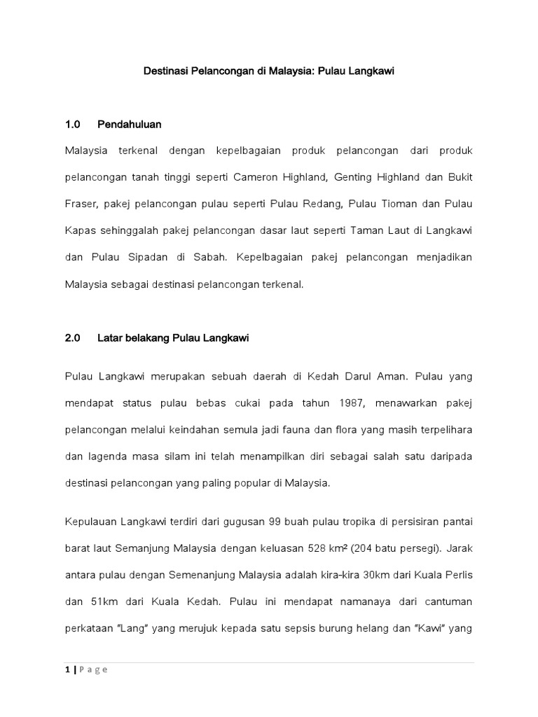 Ada tarikan terbaru di langkawi ni dan ada yang dah lama kat langkawi ni. Karangan Melawat Tempat Menarik Di Malaysia. Malaysia telah menjadi pilihan utama pelancong bukan sahaja pelancong dari negara jiran seperti Singapura Thailand dan Indonesia malah turut menjadi tumpuan pelancong asing dari Asia Barat Eropah dan Amerika Syarikat.